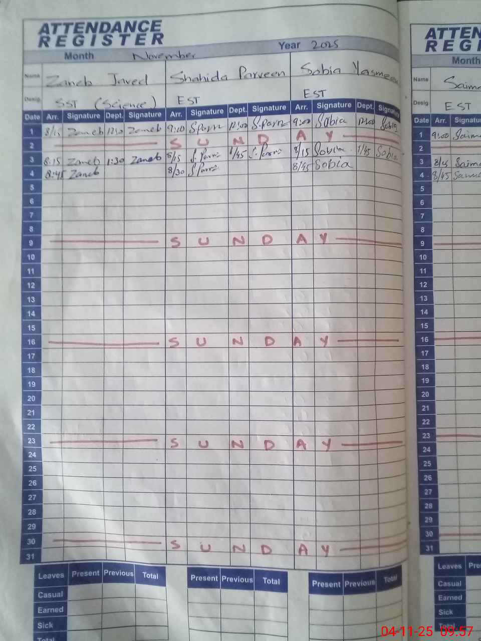 | Leave | Duty | Absent | Maternity | Medical | Ex- Pak |
