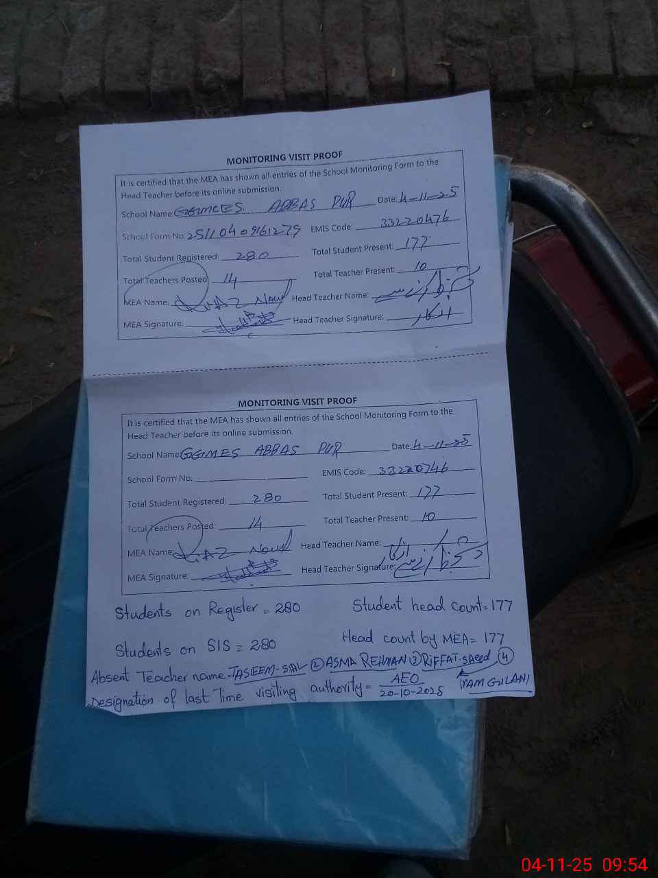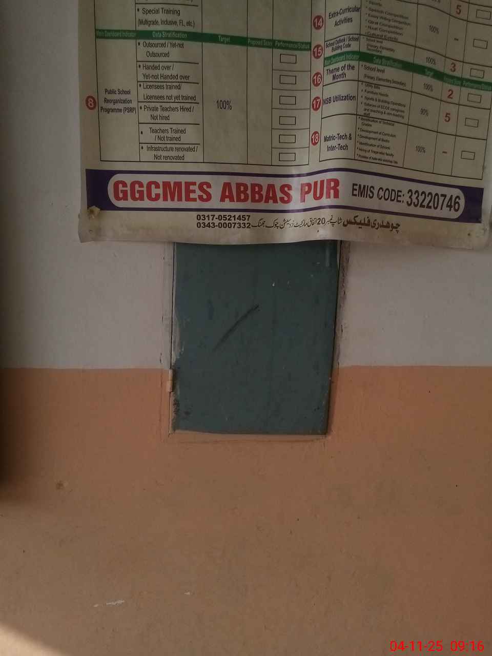 | EMIS Code: 33220746 | Name of School: GGCMES ABBAS PUR | |||