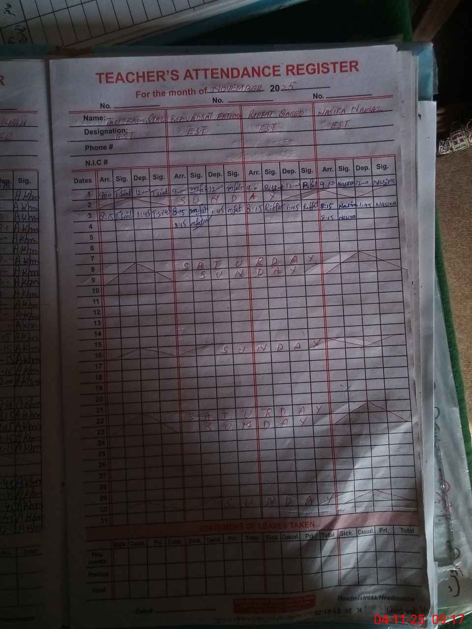 | 33**** | Sy**** Ir**** Hi**** Za**** Gi**** | ESE English | Regular | 0 | 0 | 0 | 0 | 0 | 0 | 0 | 0 | 0 | Absent (Un-Authorized) |
