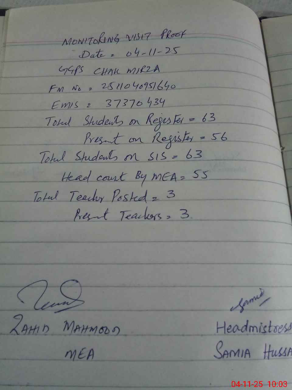 | EMIS Code: 37370434 | Name of School: GGPS CHAK MIRZA | |||