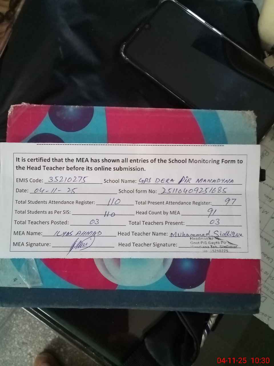 | EMIS Code: 35210275 | Name of School: GPS DERA PIR MANADYNA | |||