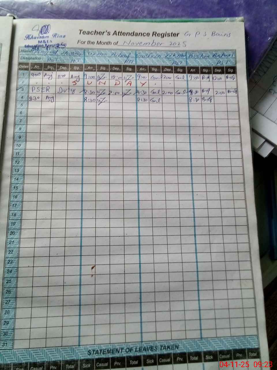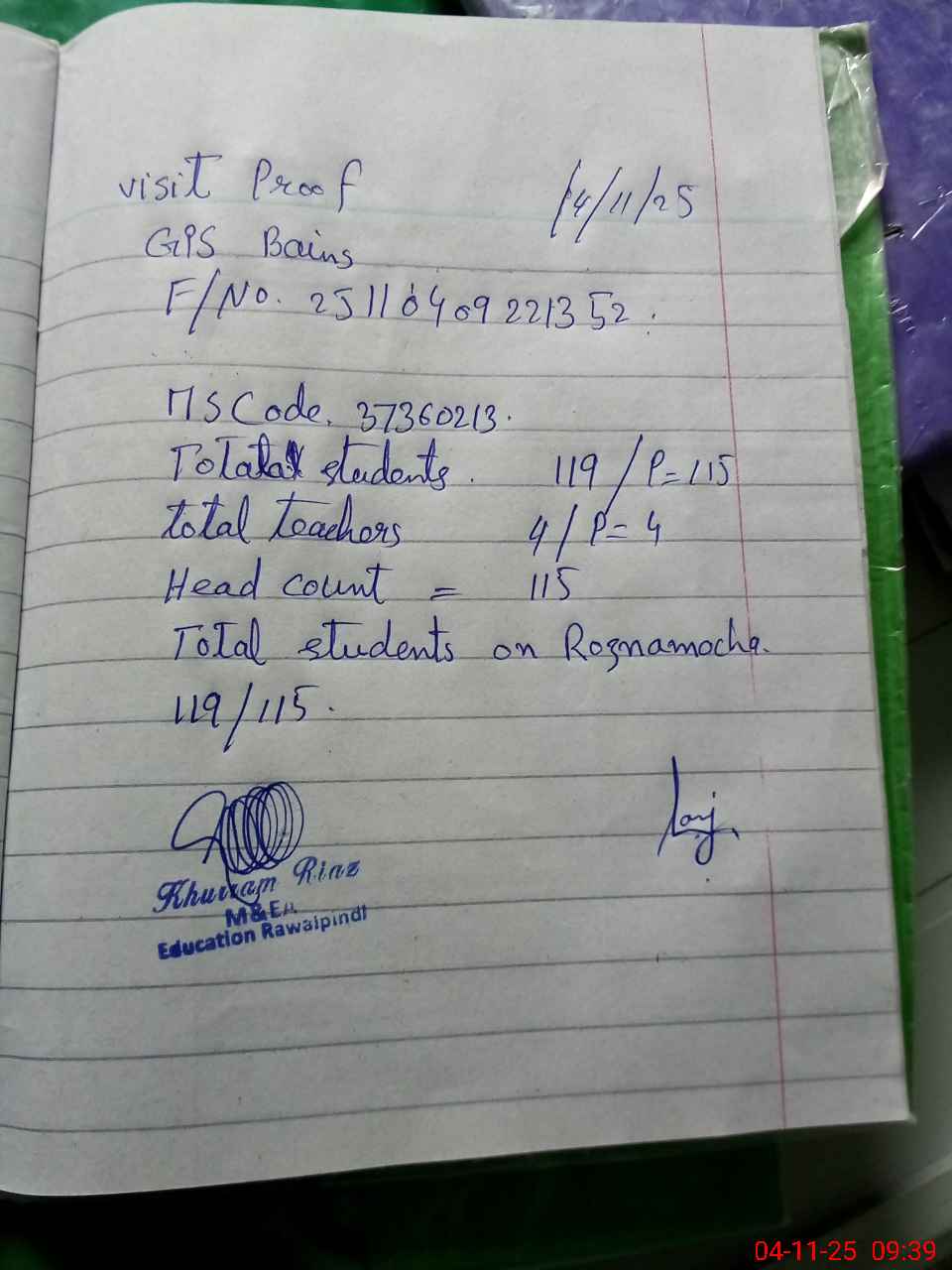 | Attendance Register | Head Teacher | MEA with School | Visit Proof |