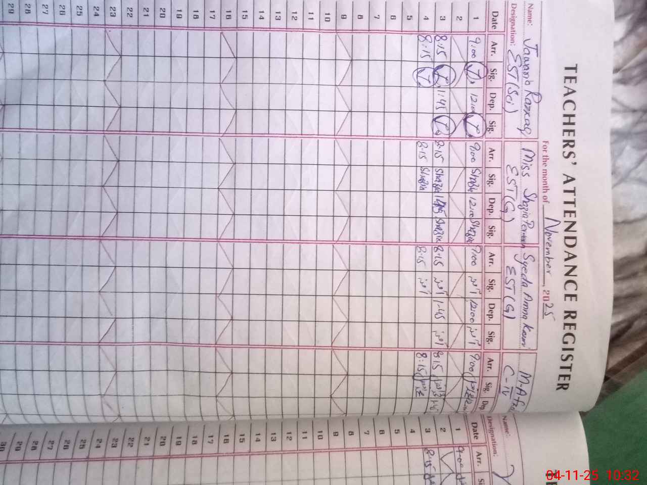| Name: Me**** Ak**** Designation: (School Headmaster's/Headmistress's) SST,(Science) Phone/Cell Number: 03**** |