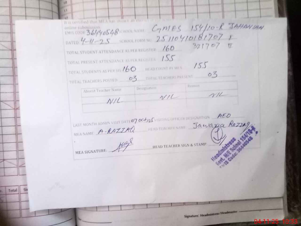 | EMIS Code: 36440548 | Name of School: GMES 154/10-R, JAHANIAN | |||