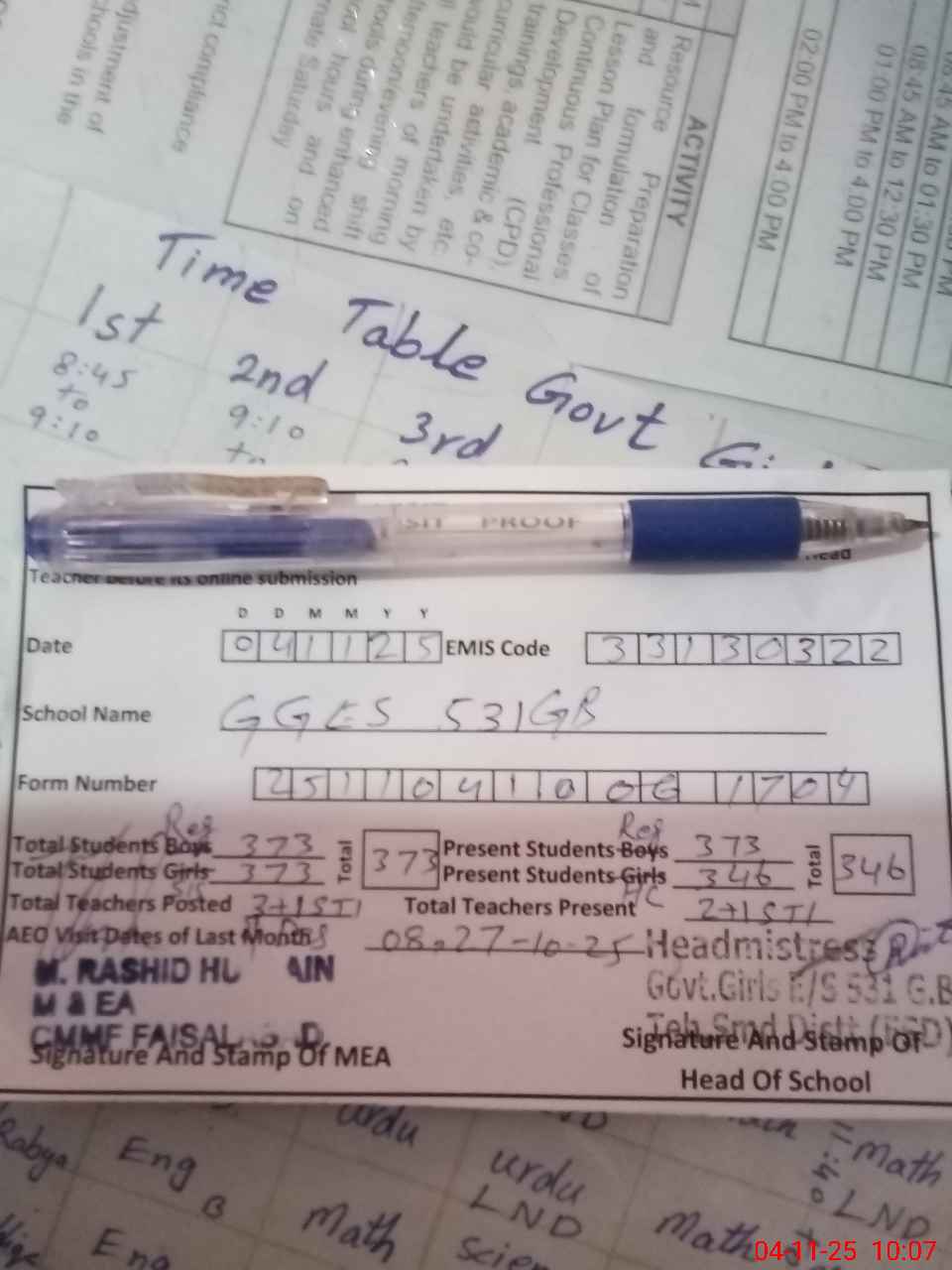 | EMIS Code: 33130322 | Name of School: GGES 531 GB TEHSIL SAMUNDARI FSD | |||