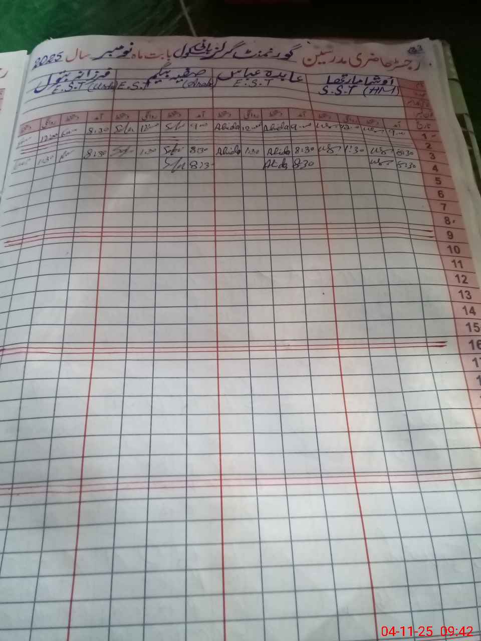 | 35**** | Nu**** Al**** Mo**** | EST | Regular | 0 | 0 | 0 | 0 | 0 | 0 | 0 | 0 | 0 | Exam Duty |