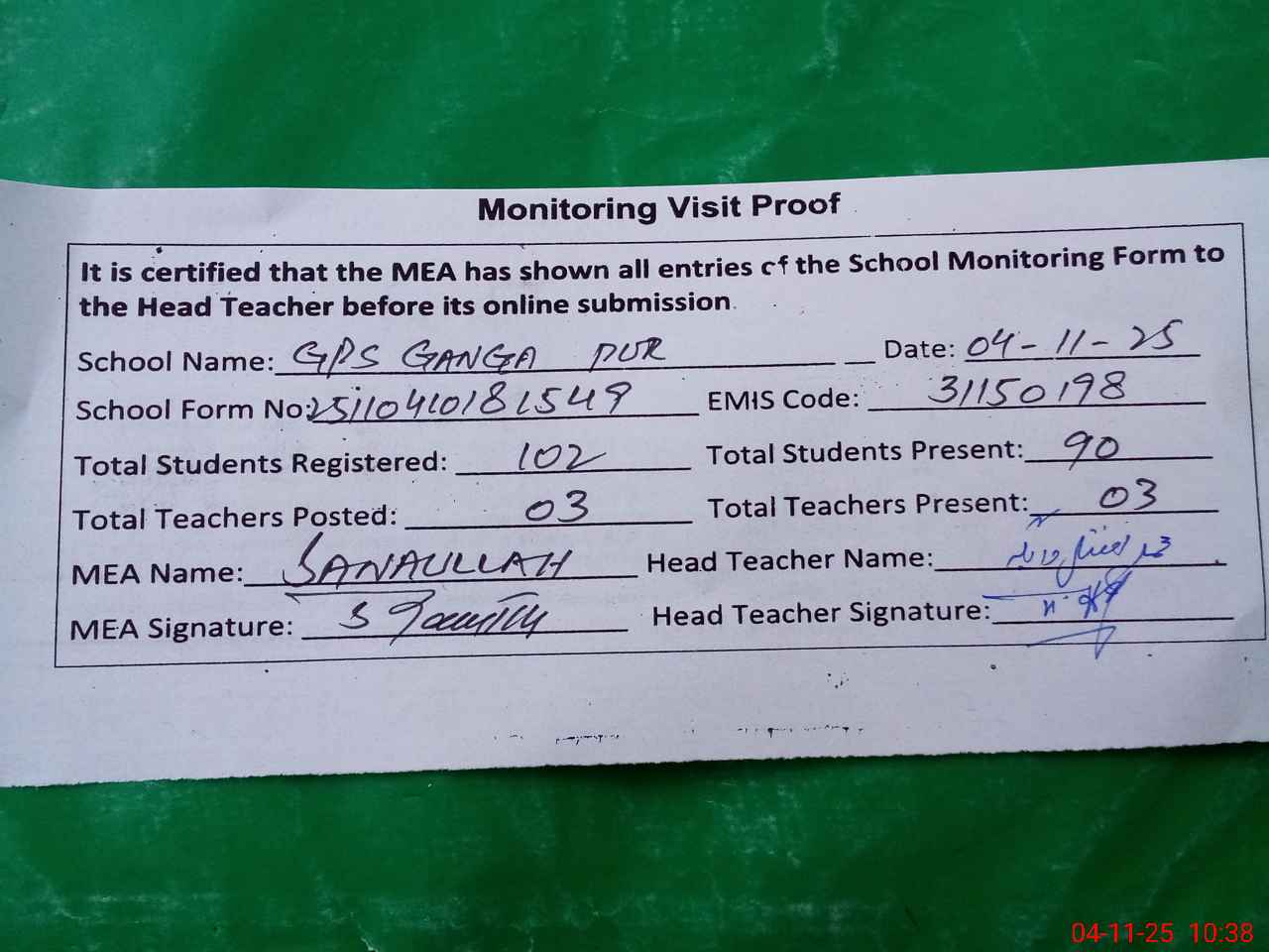 | EMIS Code: 31150198 | Name of School: GPS GANGA PUR | |||