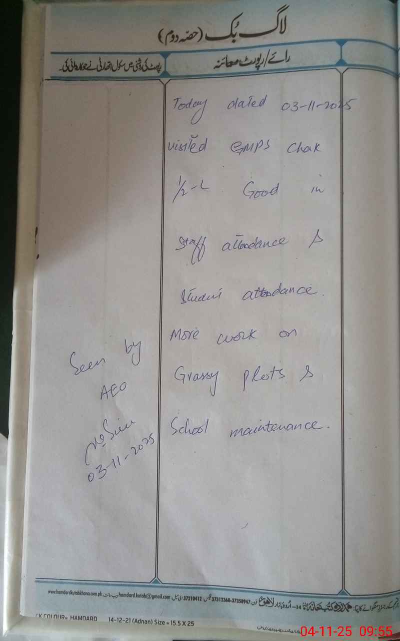 | EMIS Code: 33240390 | Name of School: GMPS CHAK NO 1/2 L | |||