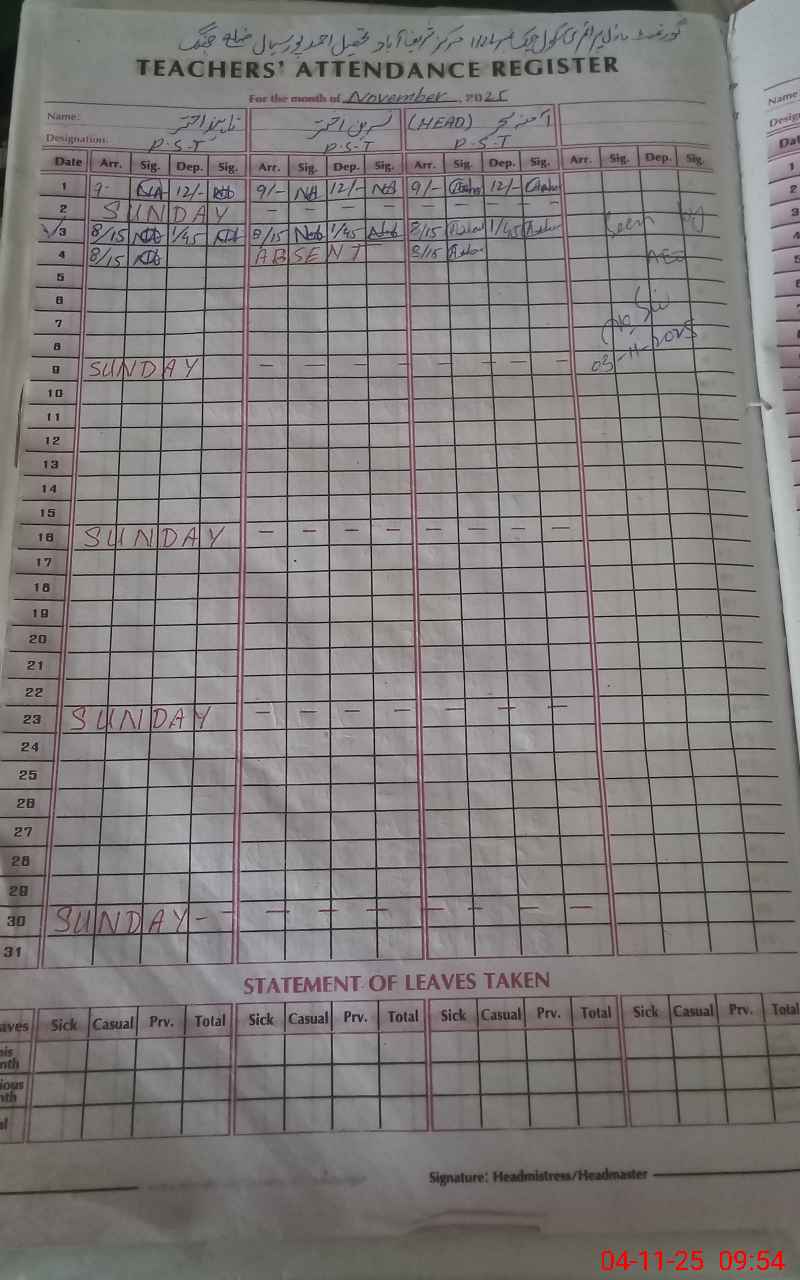 | 33**** | Na**** Ak**** | Regular | 16 | 0 | 0 | 0 | 0 | 0 | 0 | 15 | 1 | Absent (Un-Authorized) | |