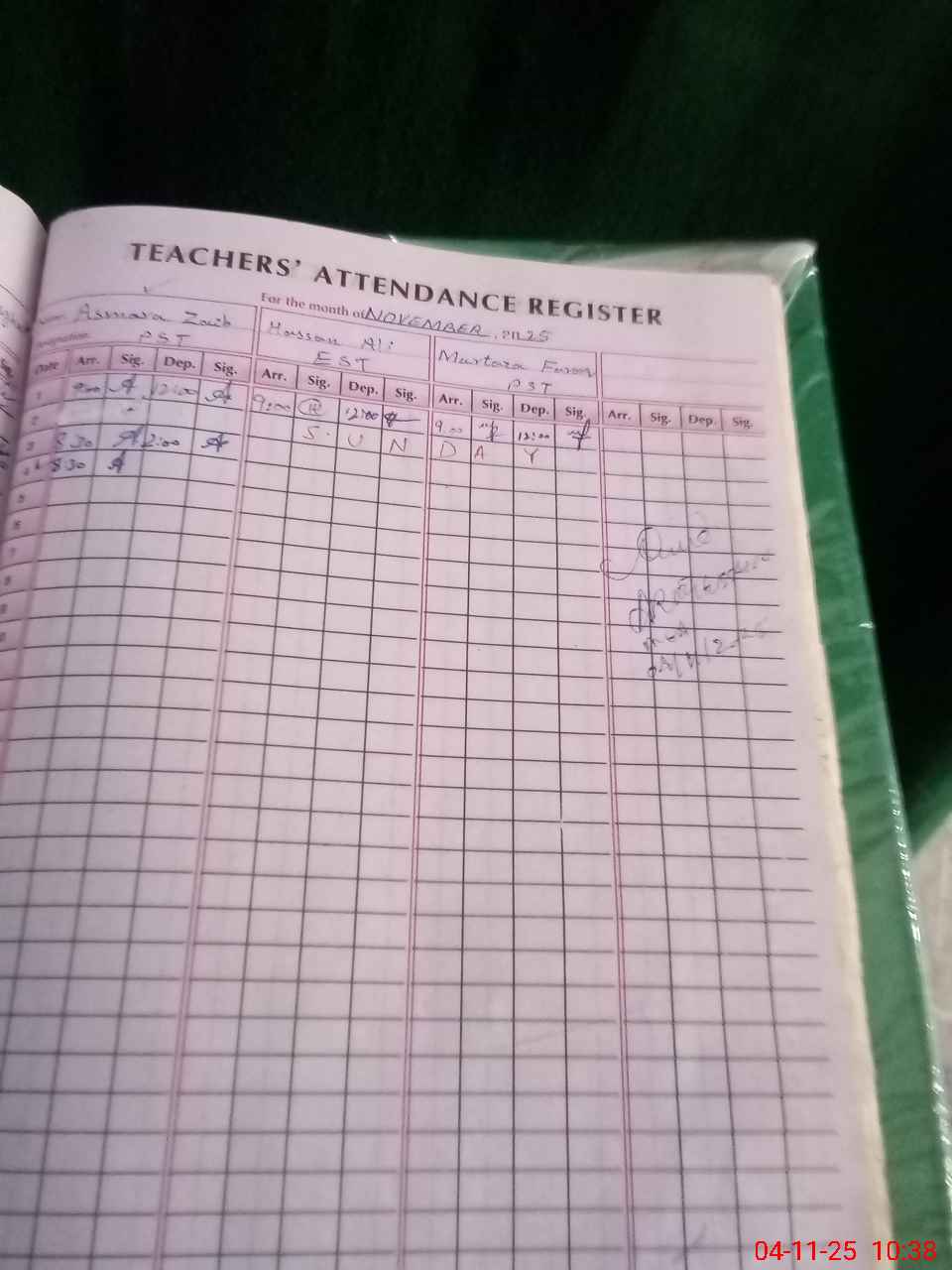 | CNIC | Full Name | Designation | R/C | Absence During Last Calender Month |