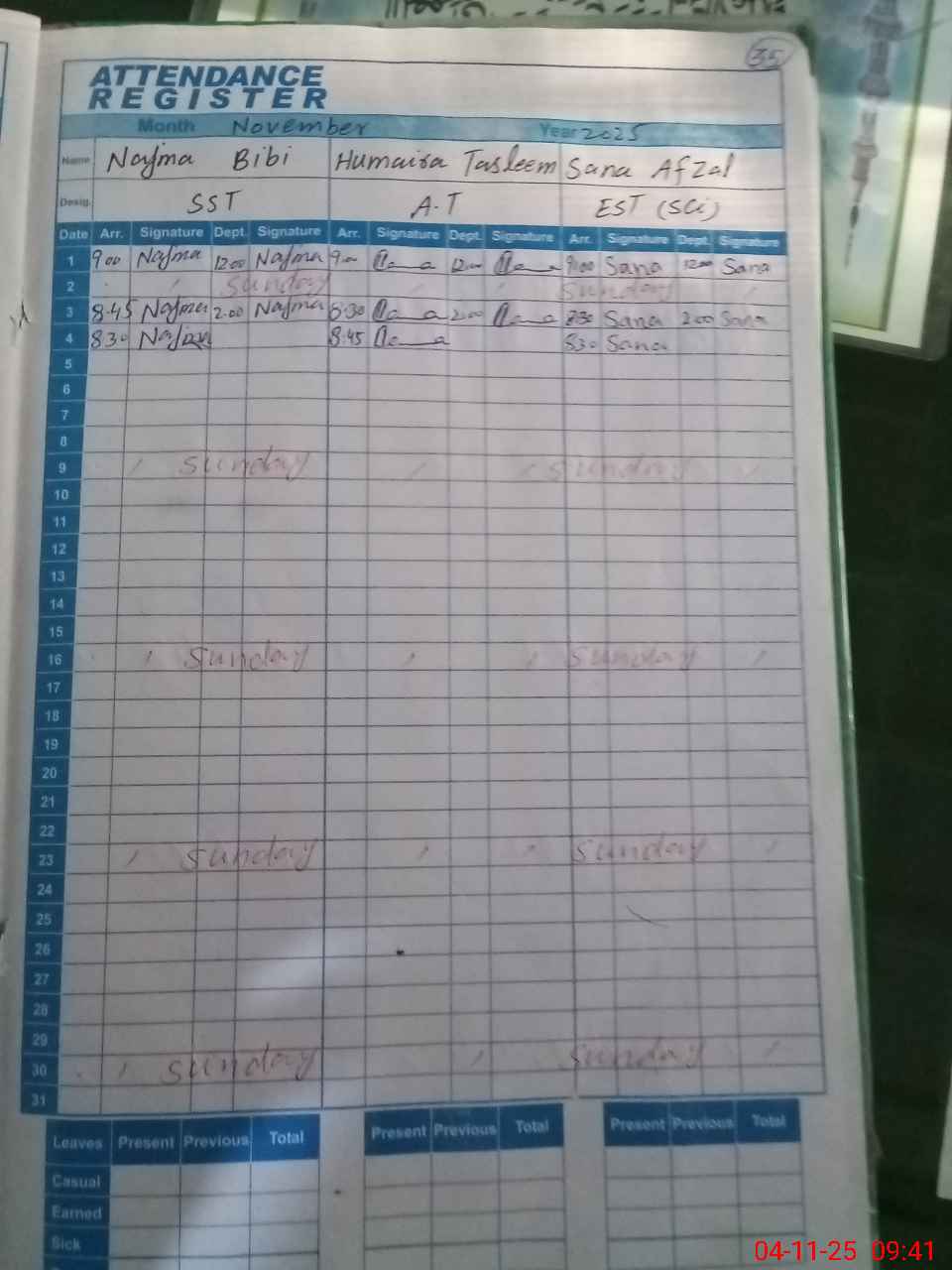 | Leave | Duty | Absent | Maternity | Medical | Ex- Pak |