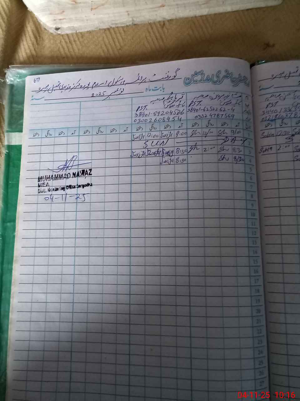 | Name: MA**** IN**** Designation: (School Headmaster's/Headmistress's) PST Phone/Cell Number: 03**** |