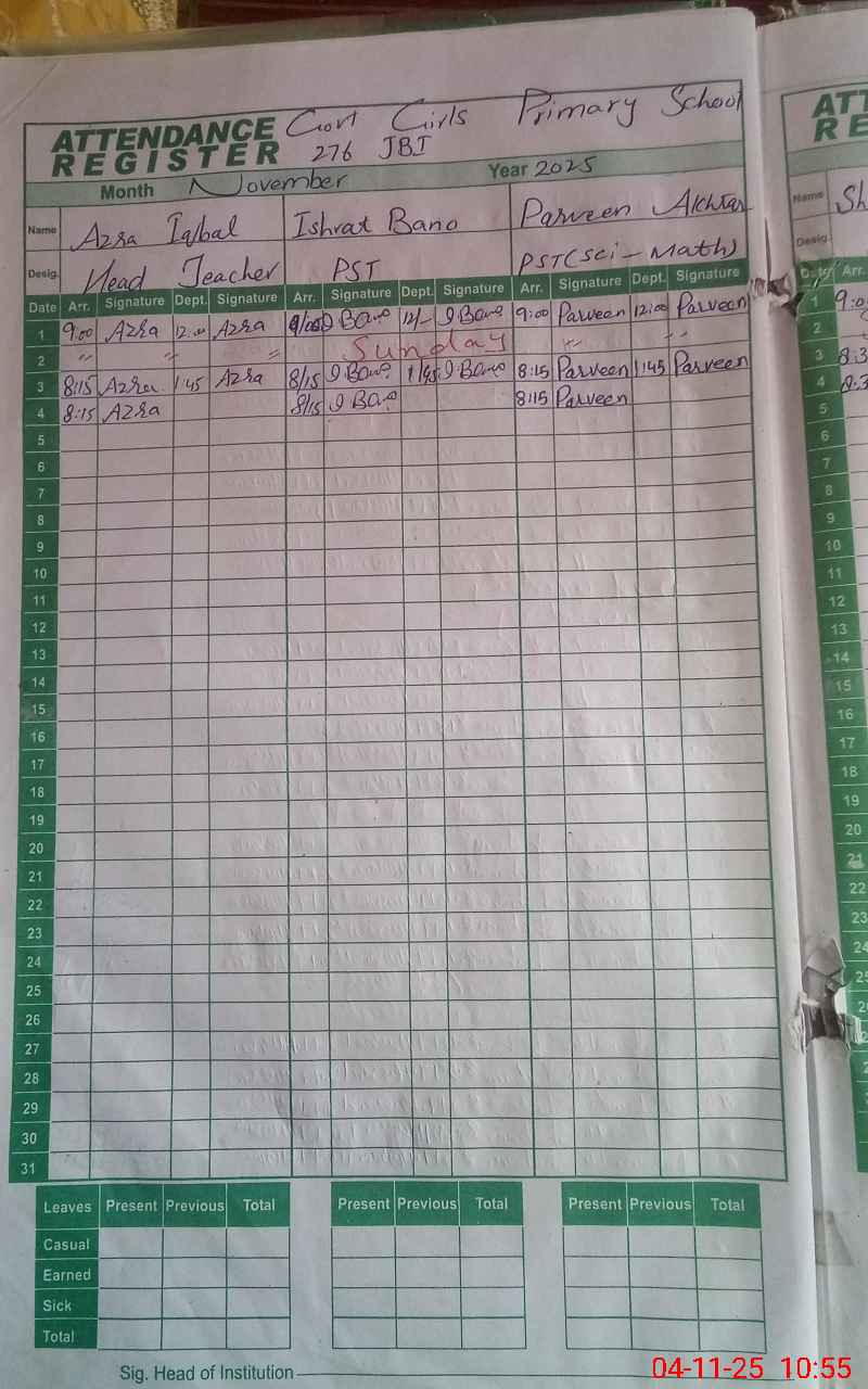 | Name: Az**** Iq**** Designation: (School Headmaster's/Headmistress's) PST Phone/Cell Number: 03**** |