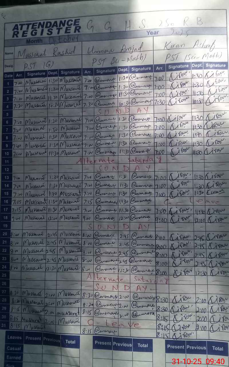 | EMIS Code: 33140511 | Name of School: GGHS CHAK 250 RB BARDAKEY | |||