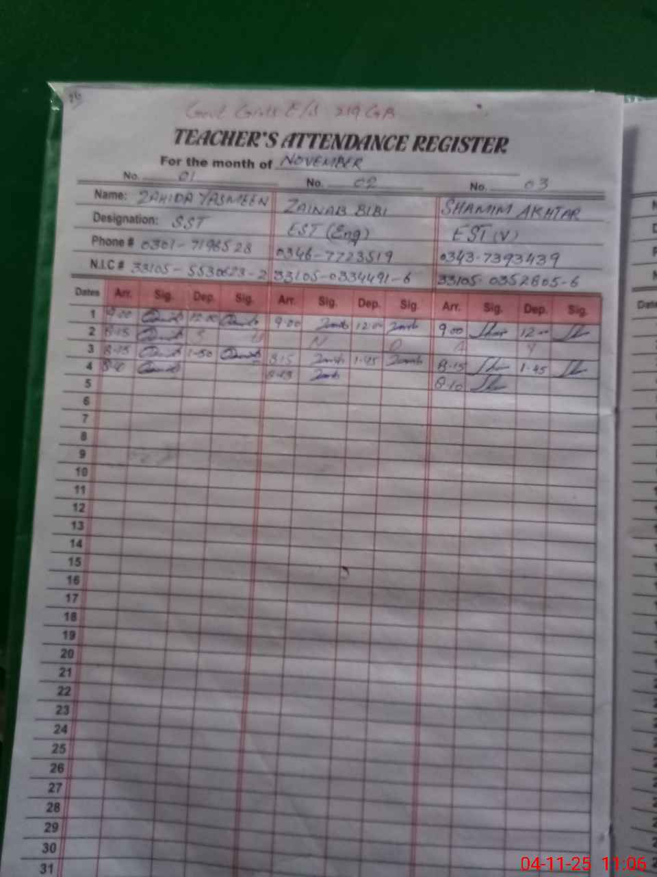 | Name: ZA**** YA**** Designation: (School Headmaster's/Headmistress's) SST (GENERAL) Phone/Cell Number: 03**** |