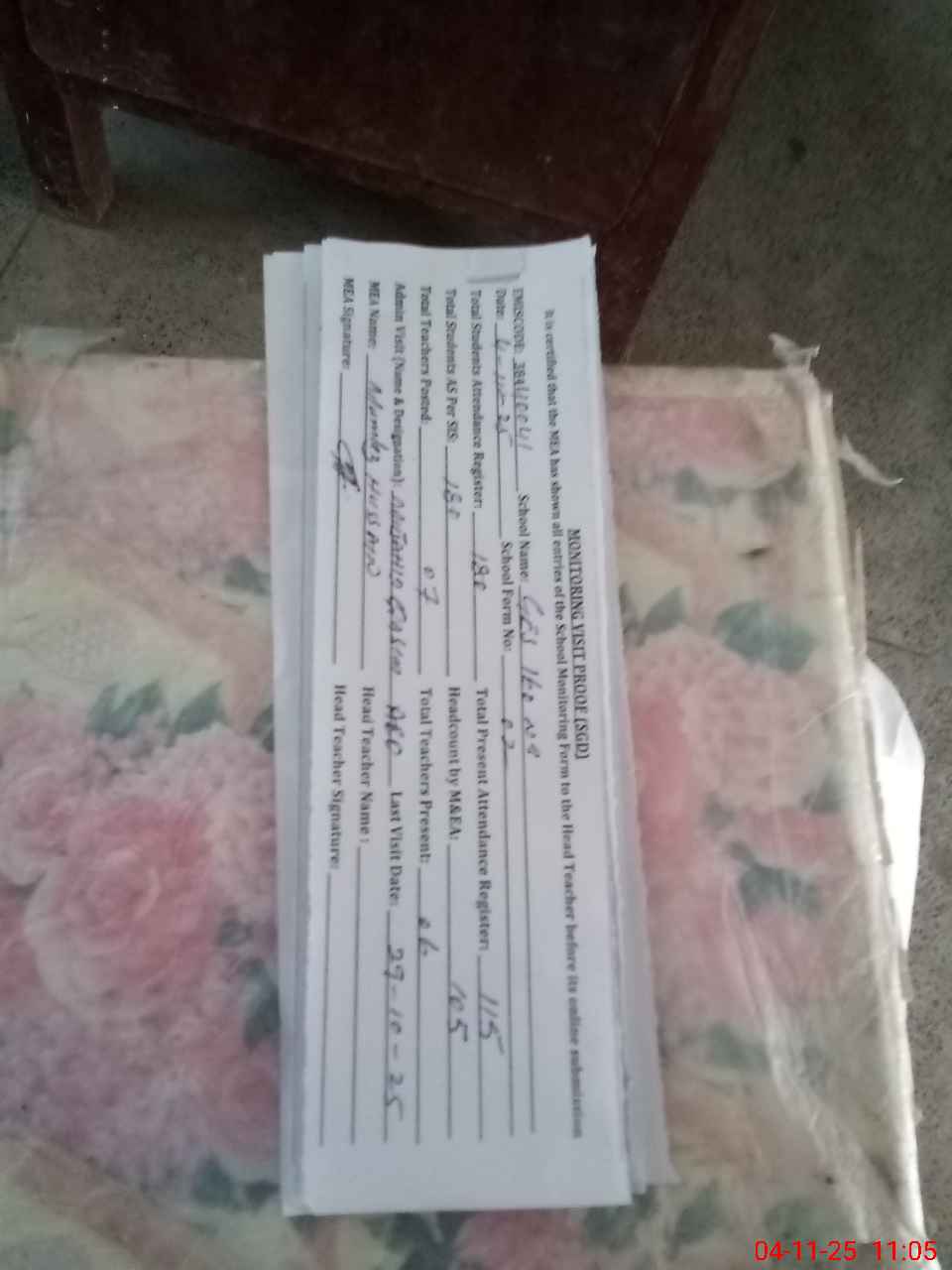 | Attendance Register | Head Teacher | MEA with School | Visit Proof |