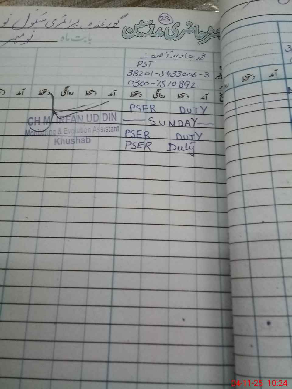 | Name: Qa**** Is**** Designation: (School Headmaster's/Headmistress's) PST Phone/Cell Number: 03**** |