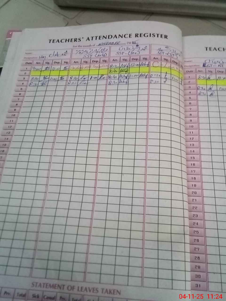 | Leave | Duty | Absent | Maternity | Medical | Ex- Pak |