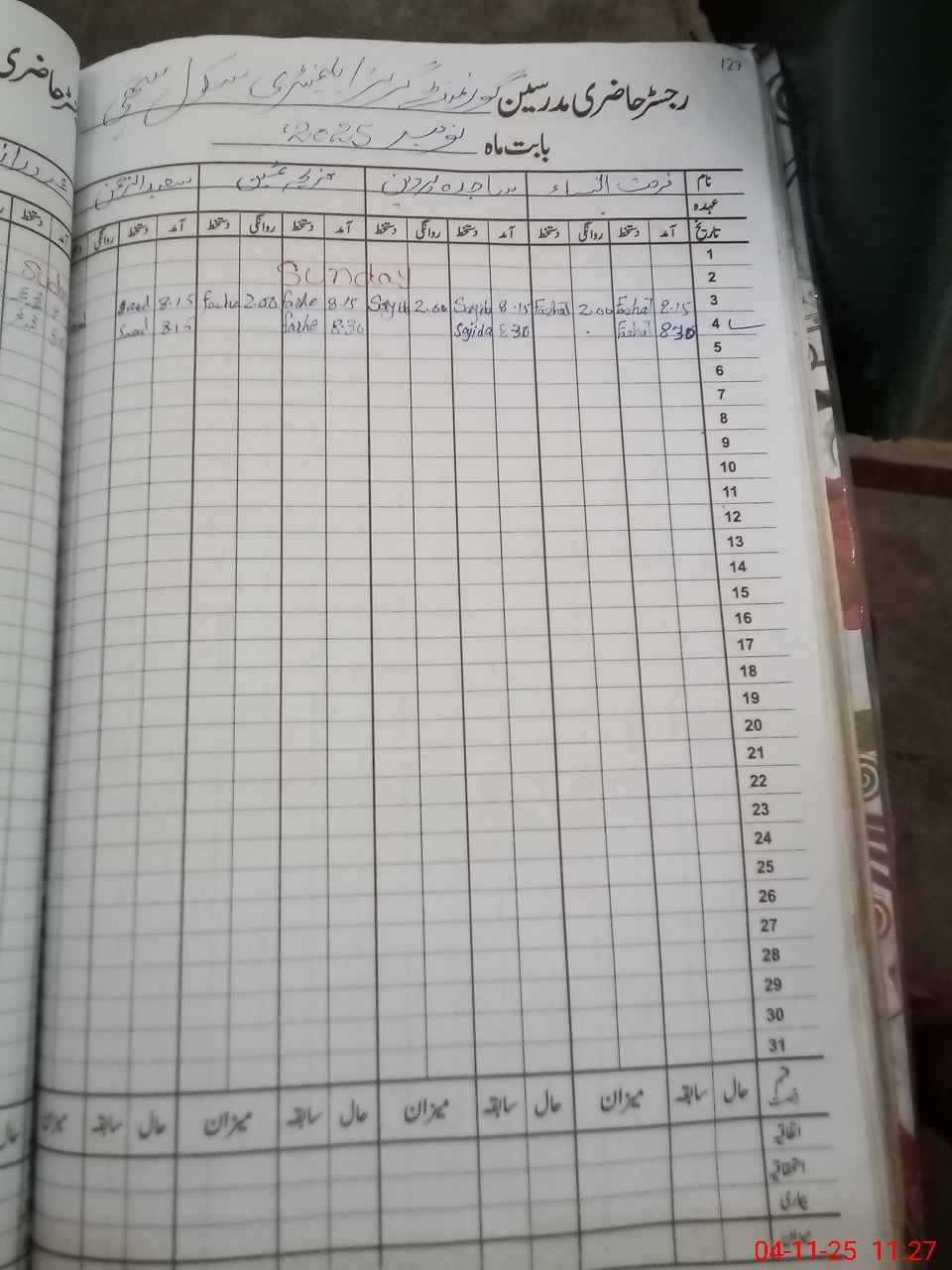 | CNIC | Full Name | Designation | R/C | Absence During Last Calender Month |