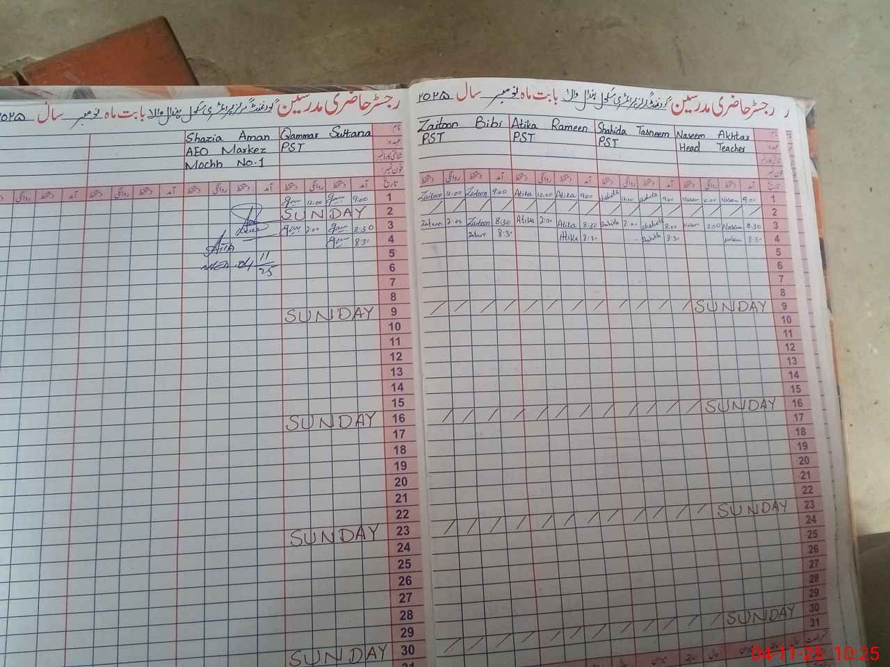 | CNIC | Full Name | Designation | R/C | Absence During Last Calender Month |