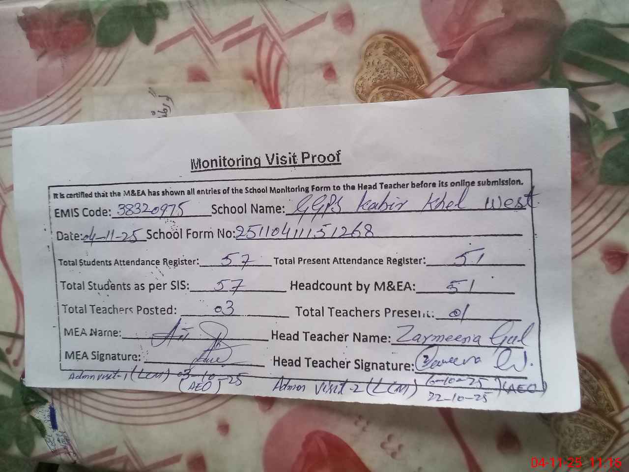 | EMIS Code: 38320975 | Name of School: GGPS KABIR KHEL WEST | |||
