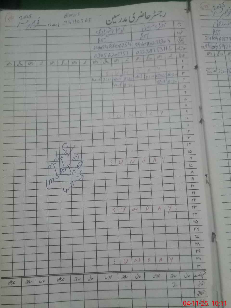 | CNIC | Full Name | Designation | R/C | Absence During Last Calender Month |