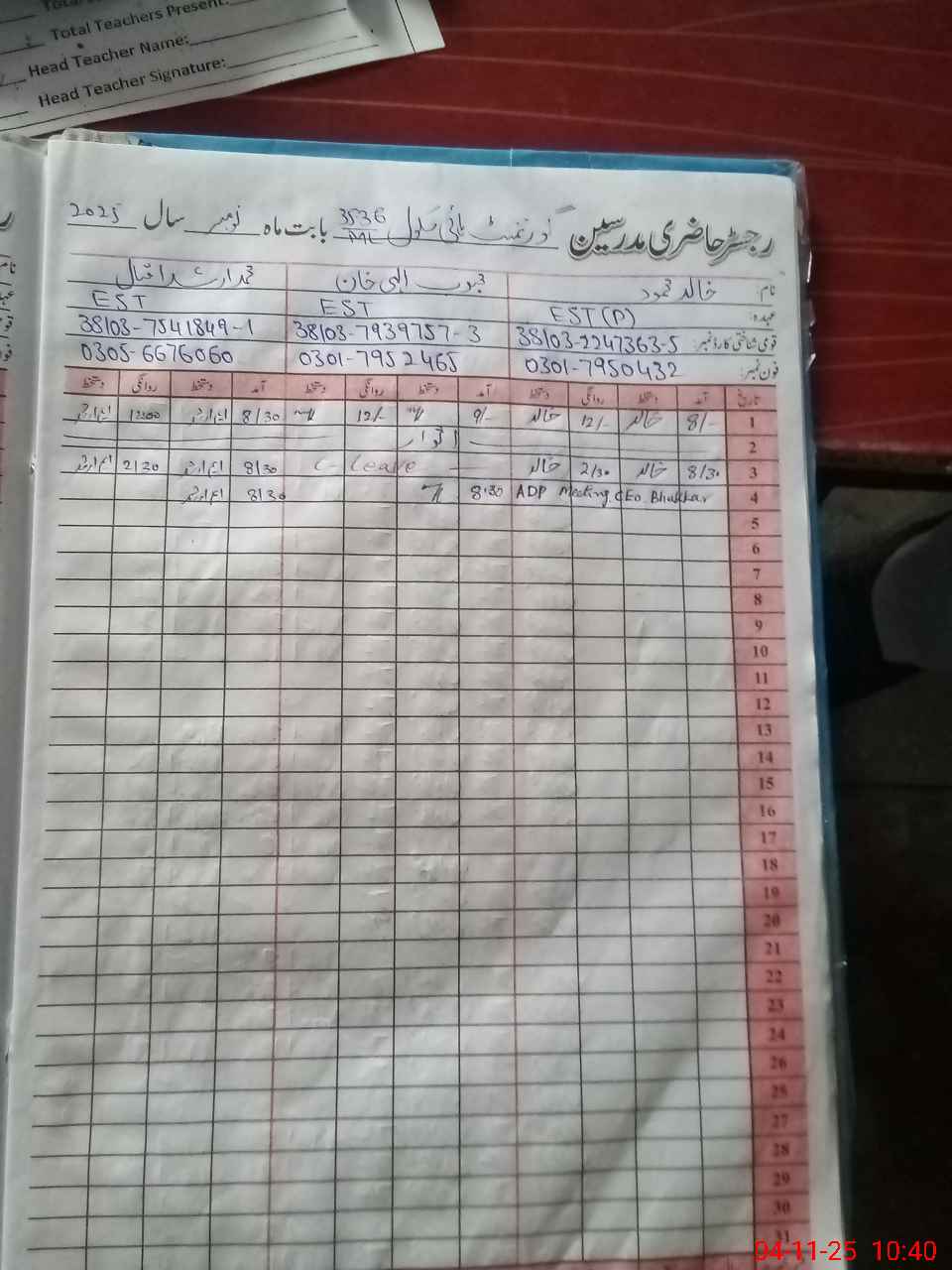 | Name: Kh**** Me**** Designation: (School Headmaster's/Headmistress's) EST Phone/Cell Number: 03**** |