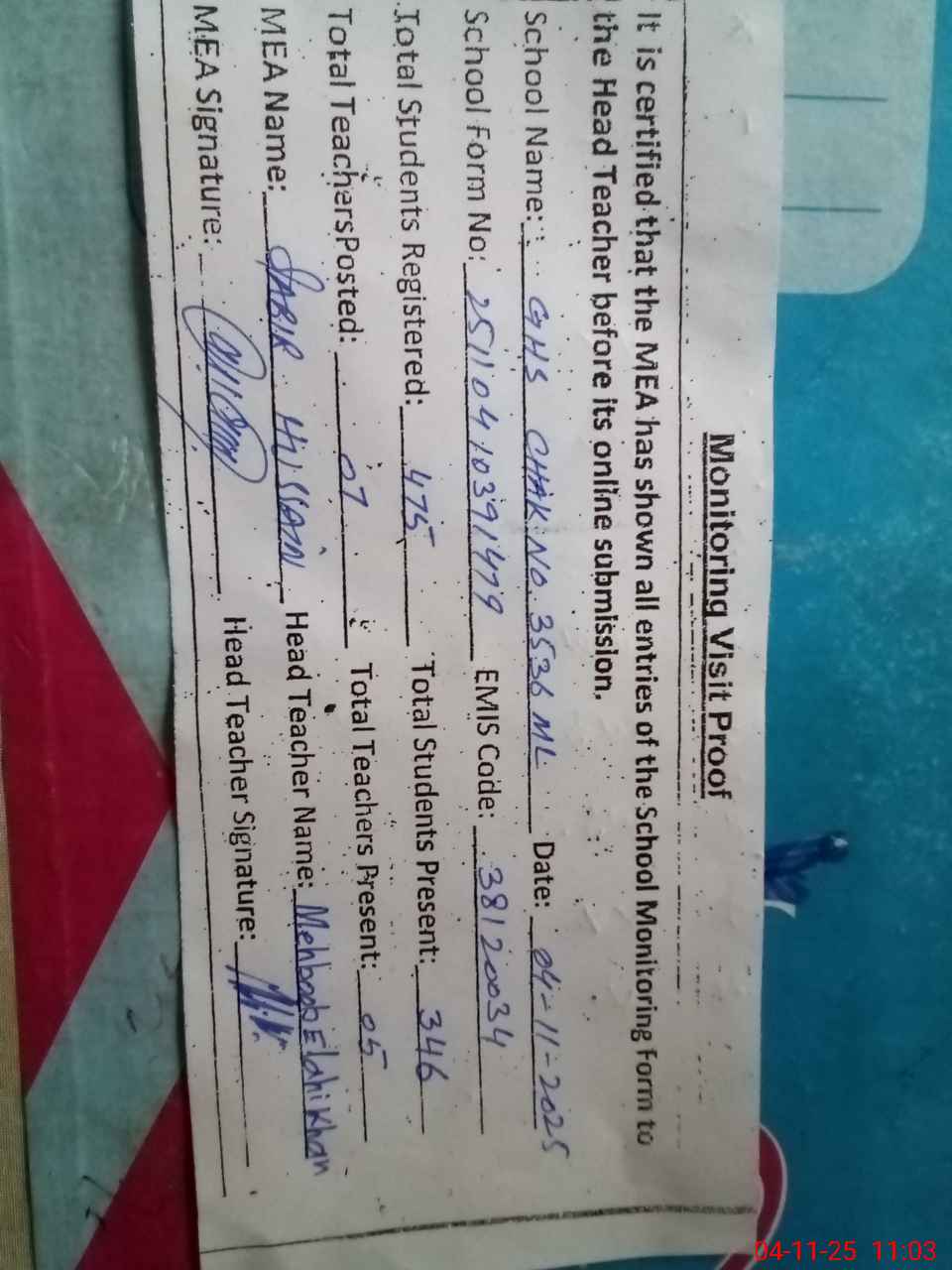 | EMIS Code: 38120034 | Name of School: GHS CHAK NO. 35-36 ML | |||