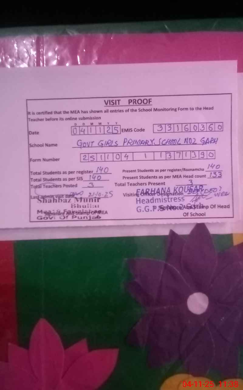 | EMIS Code: 33160360 | Name of School: GGPS NO.2 GARH | |||