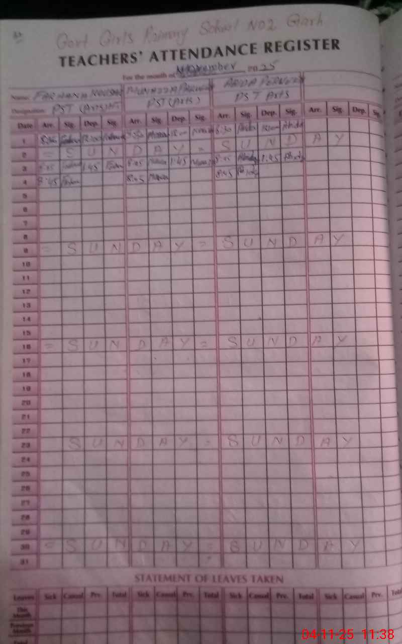 | CNIC | Full Name | Designation | R/C | Absence During Last Calender Month |