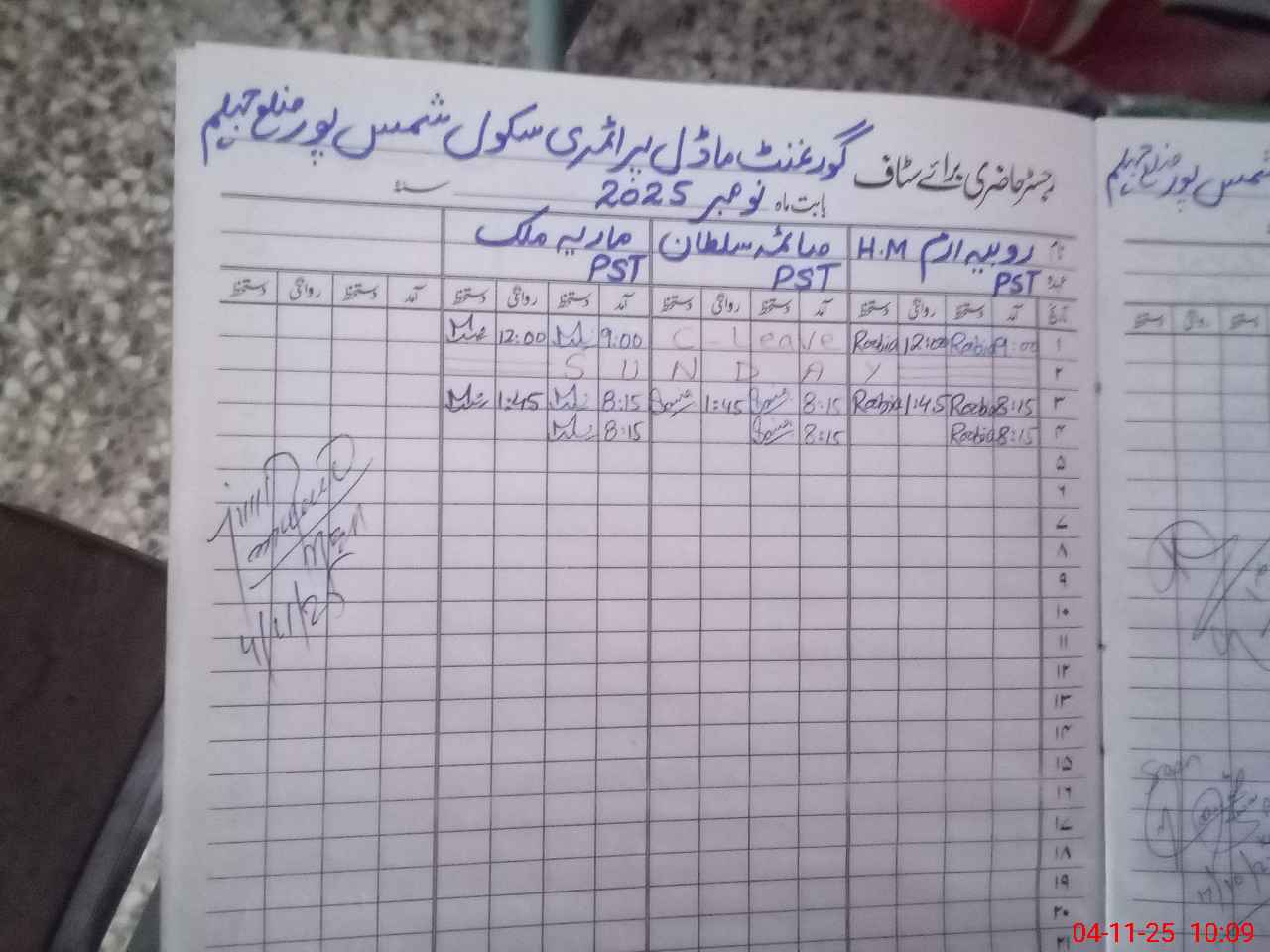 | CNIC | Full Name | Designation | R/C | Absence During Last Calender Month |