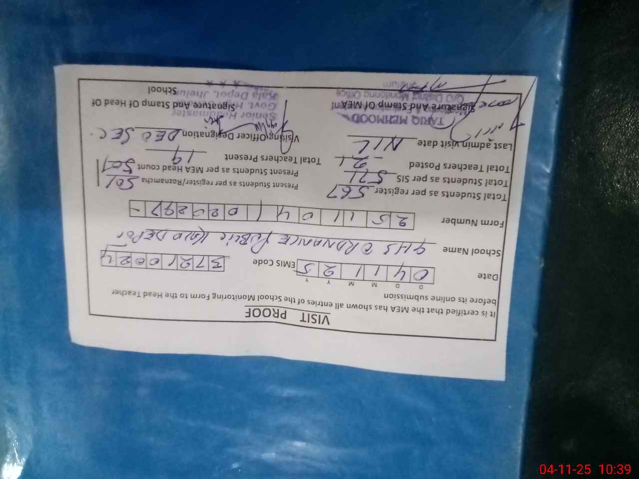 | Certified that this School was Inspected by the Undersigned MEA/DMO Today and the Information Stated Above is as Per Record. | |||||