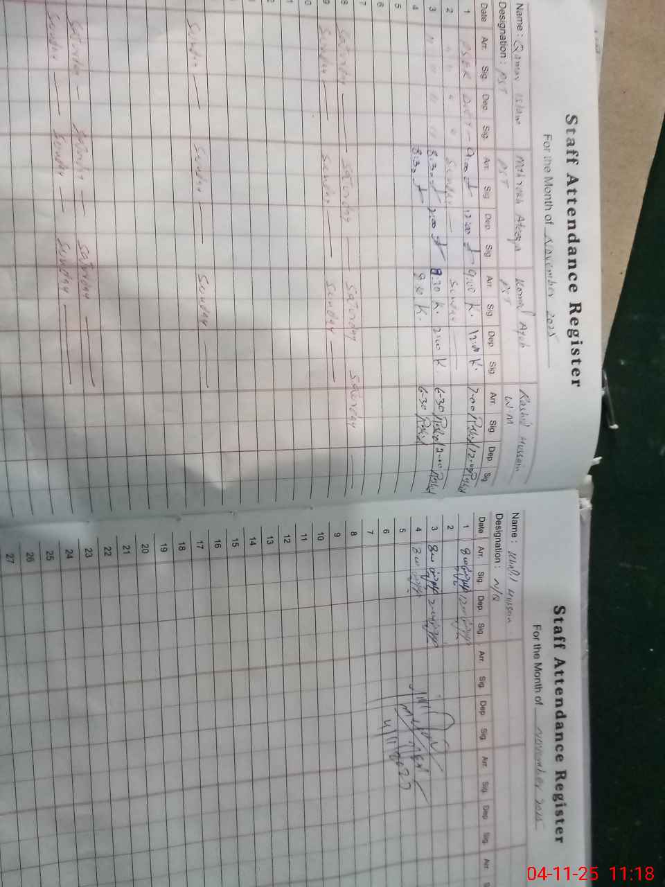 | CNIC | Full Name | Designation | R/C | Absence During Last Calender Month |
