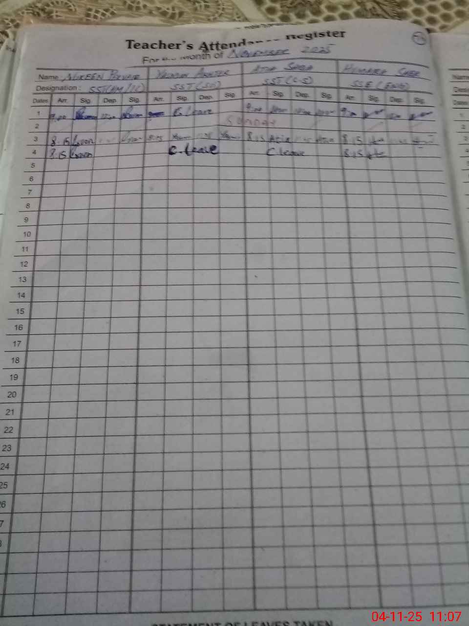 | Name: No**** Pe**** Designation: (School Headmaster's/Headmistress's) SST Arts Phone/Cell Number: 03**** |