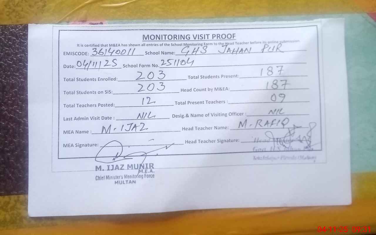 | EMIS Code: 36140011 | Name of School: GHS JAHAN PUR JALALPUR PIRWALA | |||