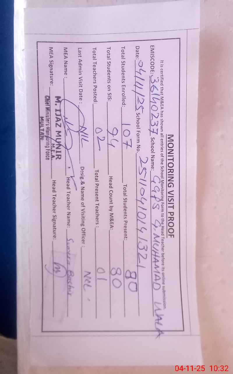 | EMIS Code: 36140237 | Name of School: GGPS GHULAM MOHAMMAD WALA | |||