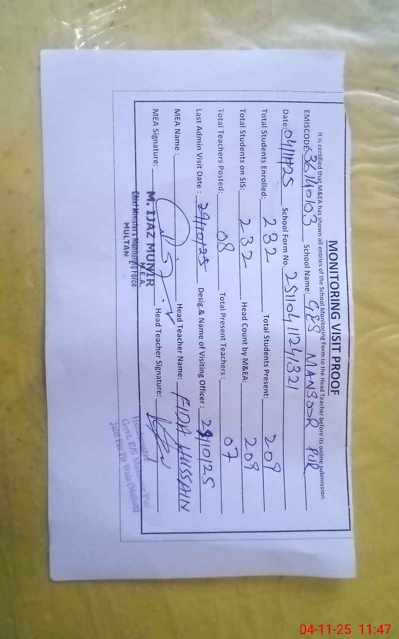 | EMIS Code: 36140103 | Name of School: GES MANSOOR PUR MOUZA MANSOOR PUR TAH. JALALPUR PIRWALA | |||