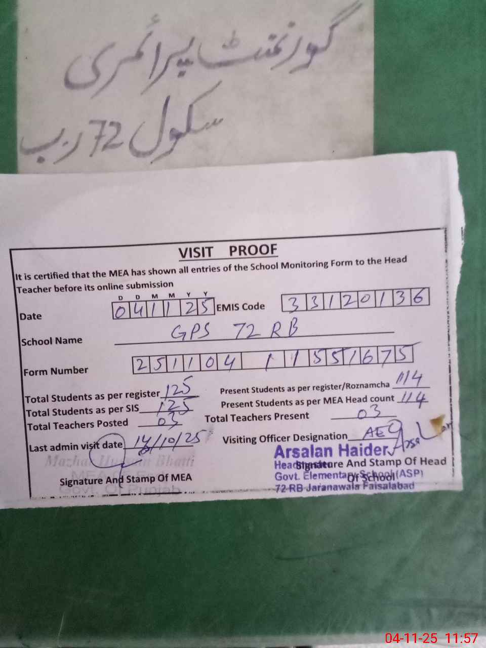 | EMIS Code: 33120136 | Name of School: GPS 72 RB | |||