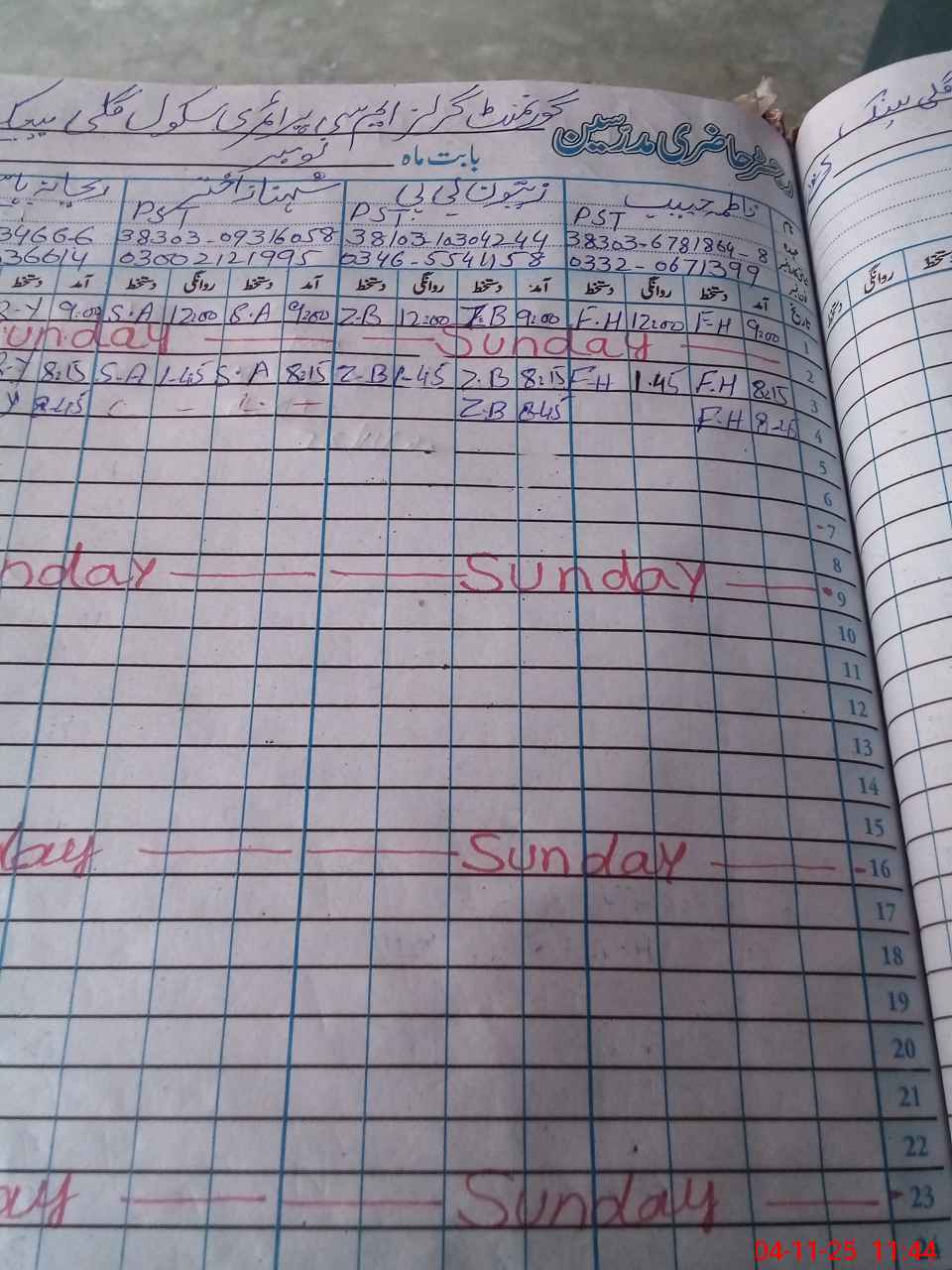 | Name: Fa**** Ha**** Designation: (School Headmaster's/Headmistress's) PST/ Phone/Cell Number: 03**** |