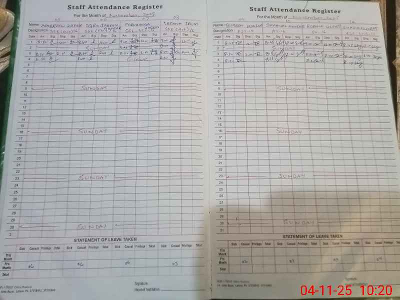 | Attendance Register | Head Teacher | MEA with School | Visit Proof |