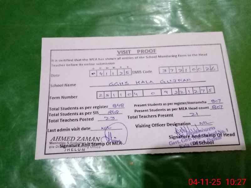 | EMIS Code: 37210026 | Name of School: GGHS KALA GUJRAN | |||