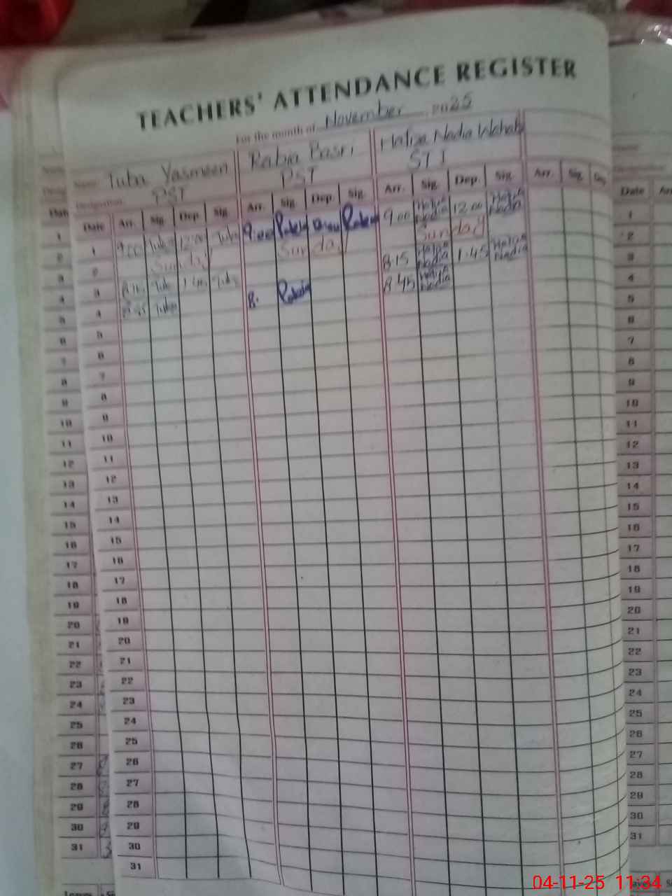 | Name: TU**** YA**** Designation: (School Headmaster's/Headmistress's) PST Phone/Cell Number: 03**** |