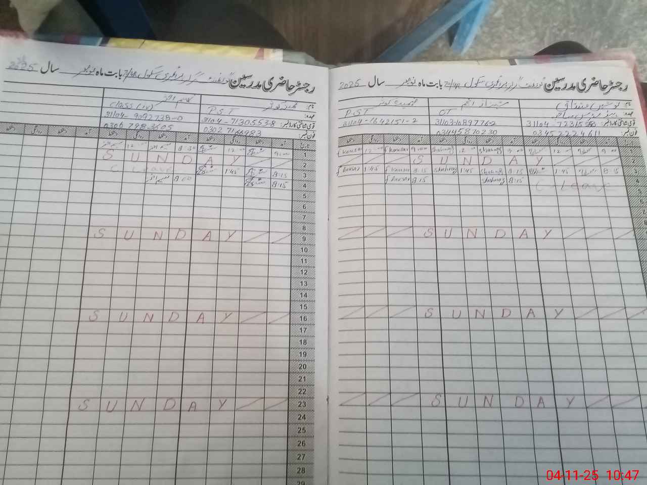 | Name: No**** Mu**** Designation: (School Headmaster's/Headmistress's) PST Phone/Cell Number: 03**** |