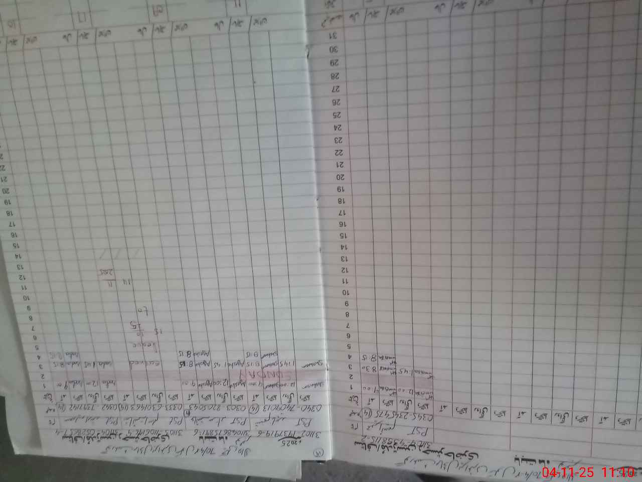 | Monitoring Date: 04-11-2025 | Start Time: 04-11-2025 11:09 AM | End Time: 04-11-2025 11:30 AM | Name of MEA: GH**** MU**** BN**** | |