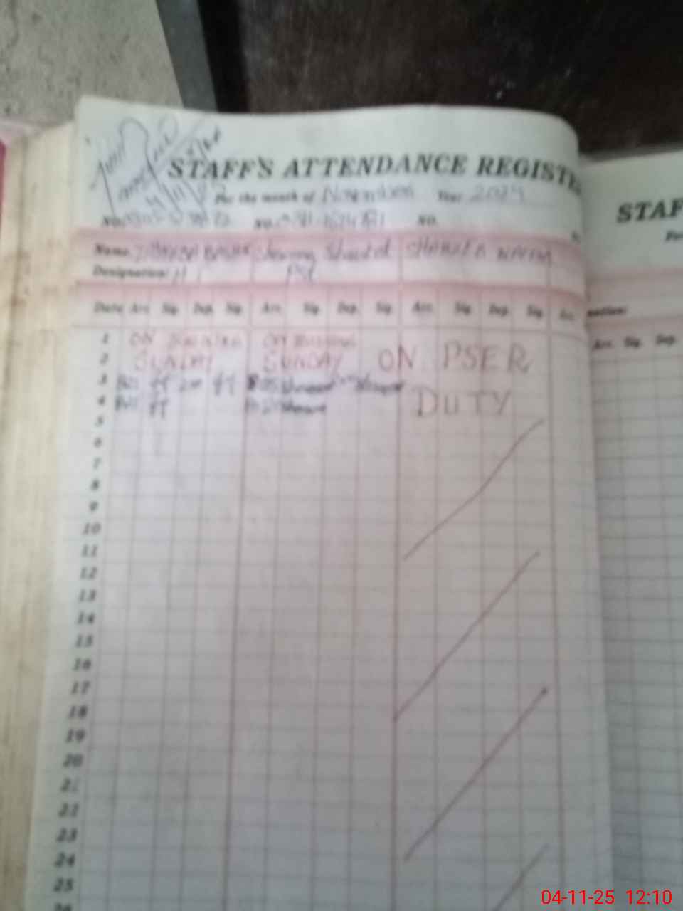 | CNIC | Full Name | Designation | R/C | Absence During Last Calender Month |