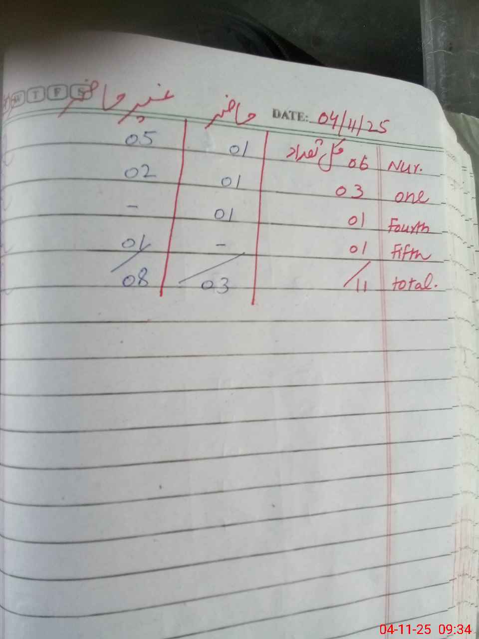 | No. of Students Present - Male | 0 | 0 | 0 | 1 | 0 | 0 | 1 | 0 | 2 | |||||||
