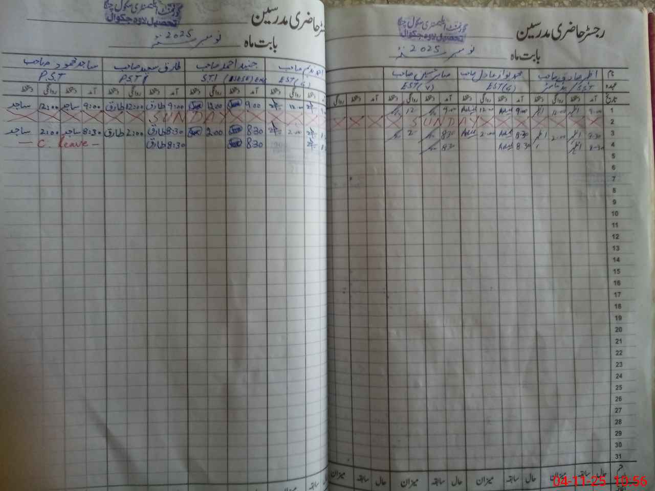 | CNIC | Full Name | Designation | R/C | Absence During Last Calender Month |