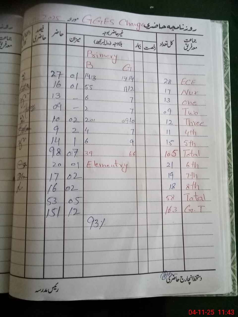 | No. of Students Present - Female | 14 | 0 | 11 | 7 | 7 | 9 | 6 | 8 | 20 | 17 | 16 | 115 | ||||