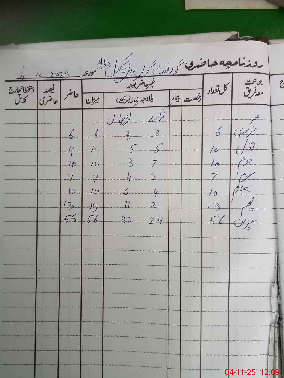 | District: TALAGANG | Tehsil: LAWA | Markaz: LAWA-FEMALE | Level: Primary | |