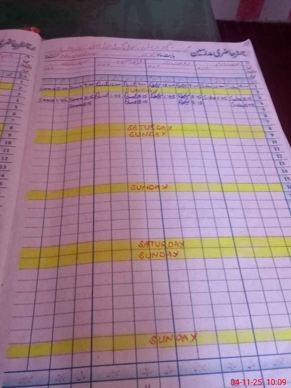 | CNIC | Full Name | Designation | R/C | Absence During Last Calender Month |